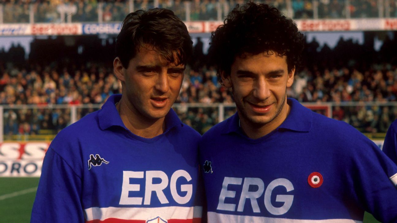 Gianluca vialli with roberto mancini a l'epoque ado ou jetait fan de la sampdoria.